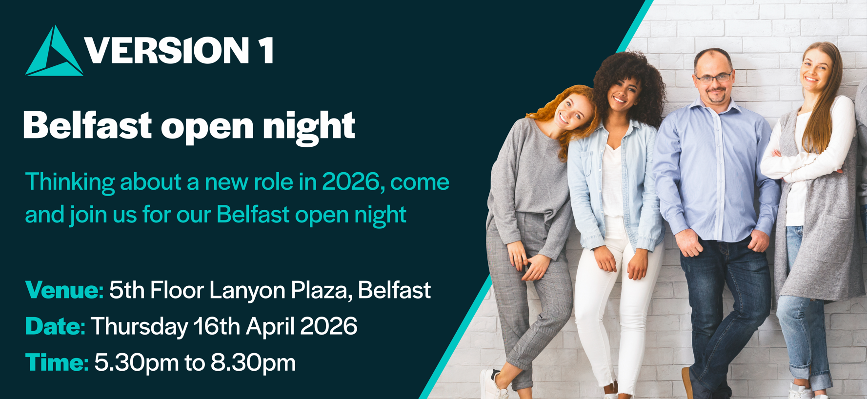 Enjoy pizza, real conversation and hear about our opportunities. Register now: https://www.version1.com/belfast-open-night/